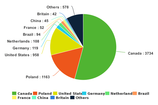 After I successfully reversed the DGA algorithm and could recreate it myself, we sinkholed one of the generated domains for the next domains cycle, and managed to find pretty interesting statistics about this family over a period of 5 days: